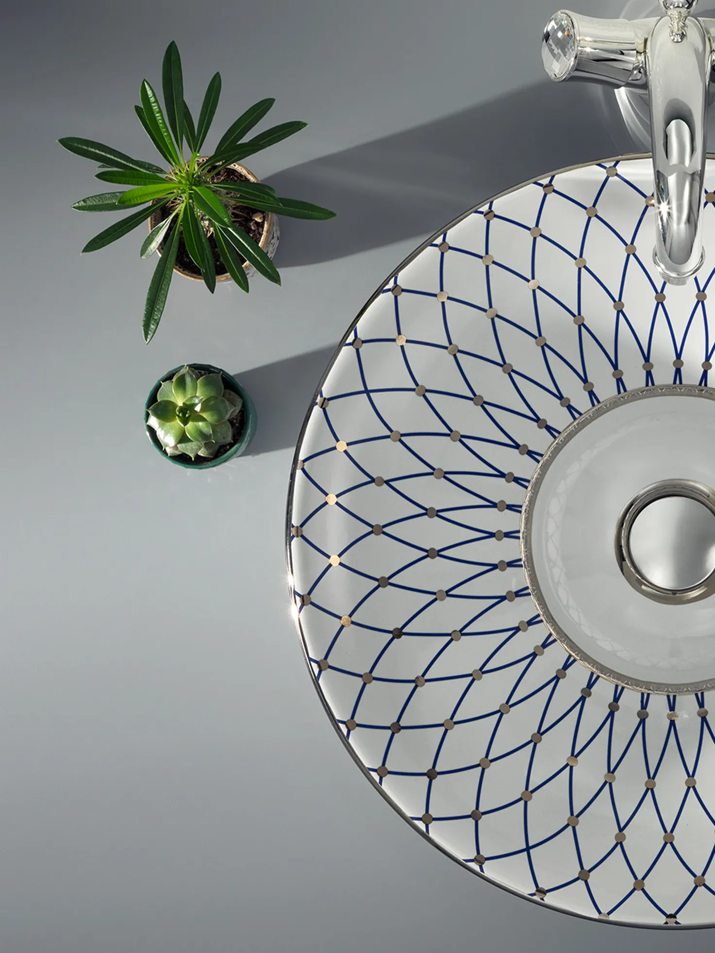 Questo modello è ideale per chi cerca un’alternativa allo stile barocco tradizionale, preferendo un lusso più lineare e “minimal-chic”. La finitura in platino è particolarmente indicata per ambienti bagno con tonalità grigie, bianche o nere, dove il dettaglio metallico diventa il punto focale della stanza.